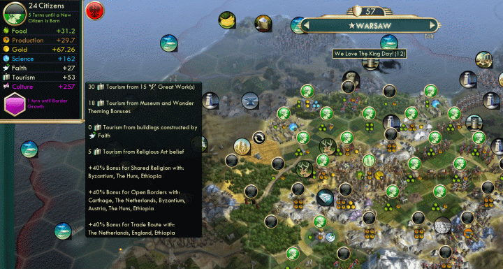 It can be described as the second offensive part of the new cultural system of the game practically an offensive culture which affects exclusively the other civilizations spreading your influence by cultural means. Tourism represents the special cultural appeal of a civilization to foreign civilizations. If you have a workable natural wonder natural heritage sites will give 5 culture to that.
